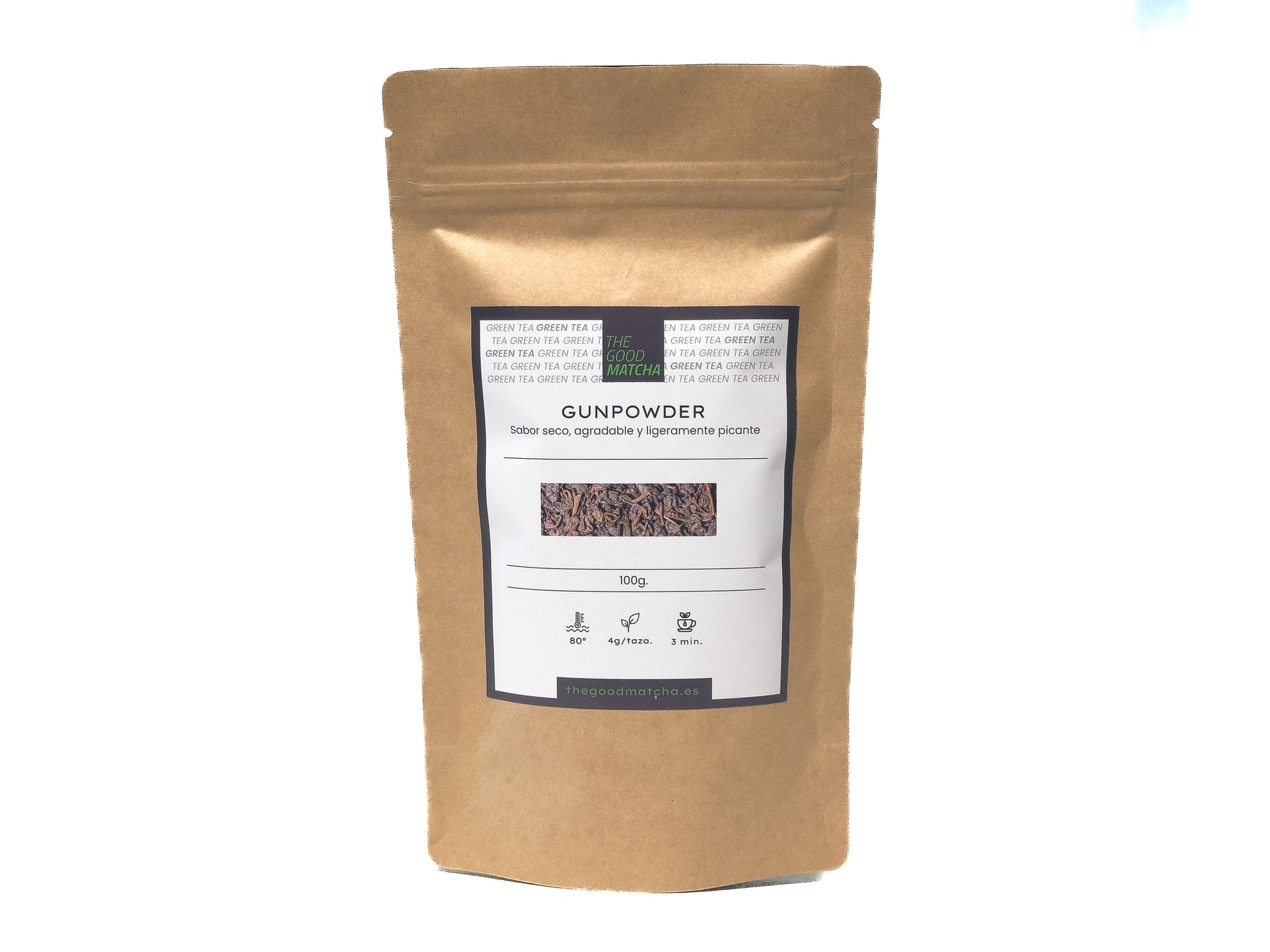 Ingredientes: 100% té verde gunpowder de alta calidad.